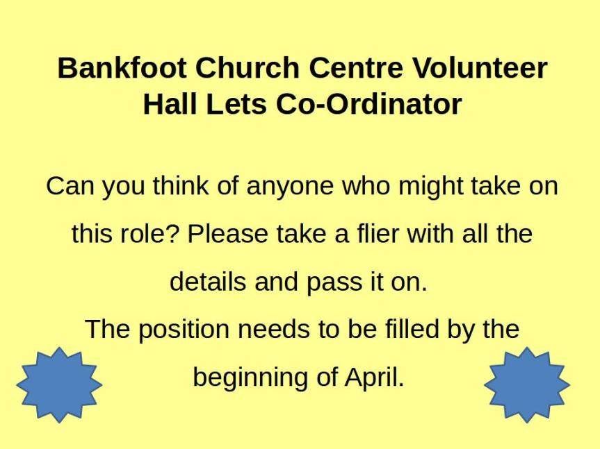Contact: 01738 788017 or auchtergavenchurch@hotmail.co.uk