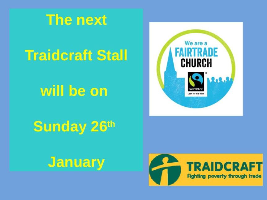 There will be a Traidcraft Stall after the Service in Stanley next Sunday 2nd February. Please give us your support.